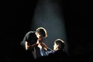 Orchestra accompanied sophomore Kiana Čanigova and junior Andrés Urzua as they sang White Christmas. Their performance was followed by the second place ask-out video, a parody of a reality TV dating show, which won a 50 percent discount on two tickets. Dance then put on a performance to the song Darling, I by Tyler, The Creator.