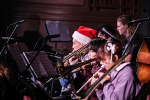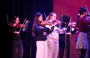 Next, Band and Orchestra joined together to perform Sleigh Ride, after which Commissioner of Clubs Chaemin Lim and Commissioner of Internal Affairs Sawyer Donaldson introduced the Winter Formal ask-out video competition. Displayed during the assembly, the top three videos received various discounts for Winter Formal tickets. The third place video, stylized like a 1920s silent film, won a 25 percent discount on two tickets.